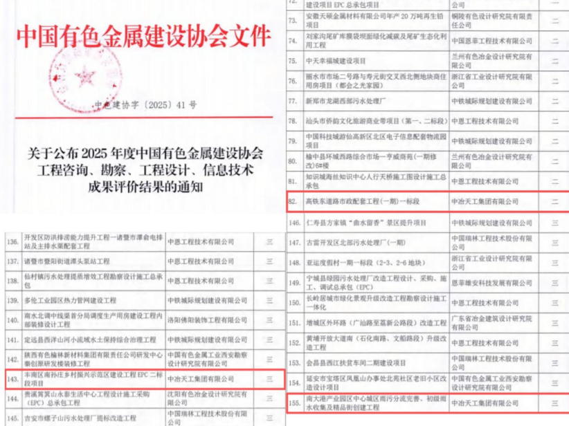 近日,中國有色金屬建設(shè)協(xié)會正式揭曉2025年度中國有色金屬建設(shè)行業(yè)優(yōu)秀工程咨詢、勘察、設(shè)計(jì)成果獎(jiǎng)評選結(jié)果。中冶天工憑借卓越的創(chuàng)新設(shè)計(jì)能力,取得一項(xiàng)二等獎(jiǎng)和兩項(xiàng)三等獎(jiǎng)的優(yōu)異成績。本次獲獎(jiǎng)充分展現(xiàn)了中冶天工在規(guī)劃設(shè)計(jì)領(lǐng)域的技術(shù)實(shí)力和綜合能力,通過精品工程的示范效應(yīng),為企業(yè)實(shí)現(xiàn)高質(zhì)量發(fā)展奠定了堅(jiān)實(shí)的業(yè)績基礎(chǔ)、打造了品牌優(yōu)勢。