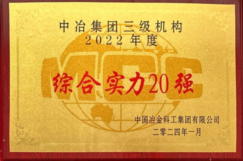 中冶集团三级机构2022年度综合实力20强