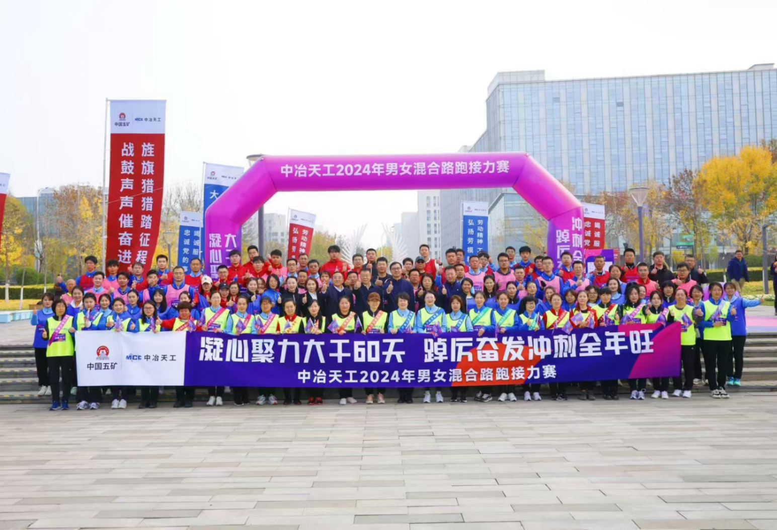 為積極響應中國五礦“大干60天,沖刺全年旺”的號召,激發全體干部職工拼搏進取、奮發有為的信心和斗志,增強團隊強大合力,聚力齊發,奮力沖刺年度目標任務,11月15日,中冶天工工會舉辦“凝心聚力大干60天,踔厲奮發沖刺全年旺”男女混合路跑接力賽,來自總部機關和二級單位的25支參賽代表隊100余人參加活動,公司黨委書記、董事長高文華出席活動并為接力賽鳴槍發令,公司黨委副書記文科出席活動并講話。