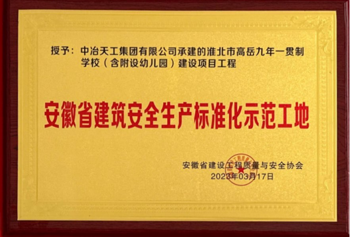 2023-112淮北市高岳九年一贯制水学校(含附设幼儿园)安徽省建筑安全生产标准化示范工地(牌匾)