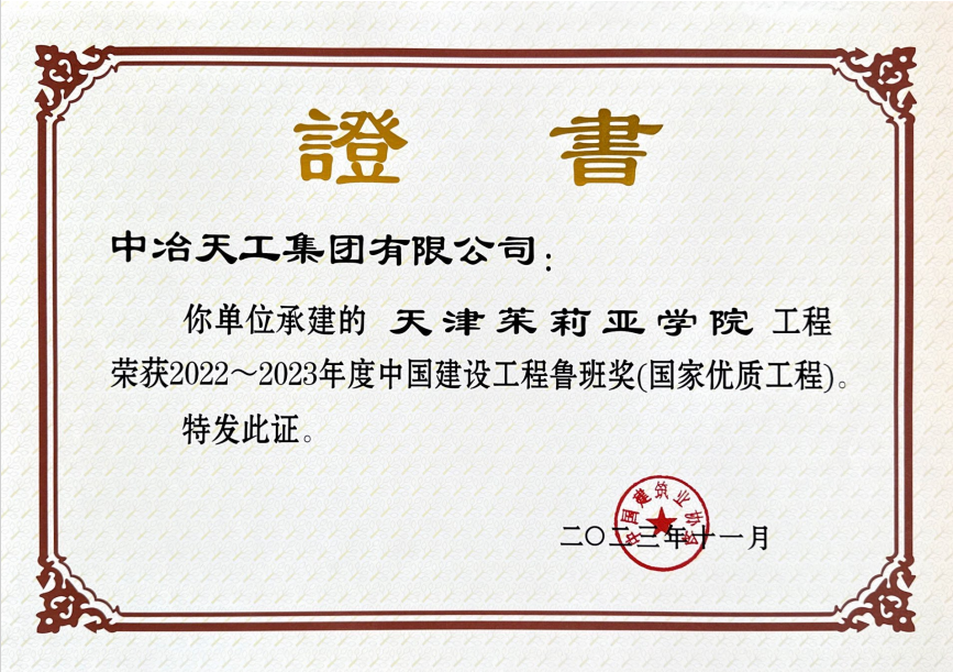 2022-2023年度中国建设工程鲁班奖(国家优质工程)天津茱莉亚学院