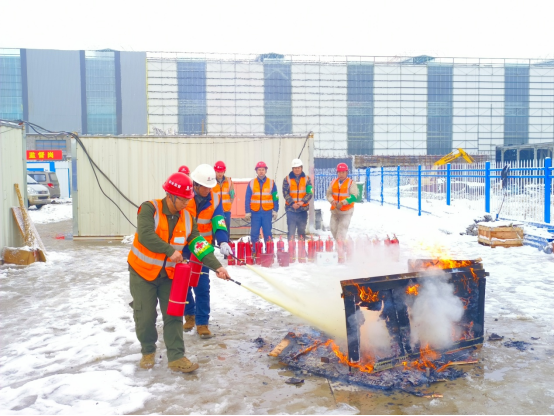 此次演練主要針對(duì)施工階段現(xiàn)場(chǎng)設(shè)備包裝箱拆除后要及時(shí)清理,高處動(dòng)火作業(yè)采取接火措施下方設(shè)備有效覆蓋,監(jiān)護(hù)人配備滅火器、清理周邊易燃物消除火災(zāi)隱患等常見(jiàn)火災(zāi)安全隱患開(kāi)展。應(yīng)急物資準(zhǔn)備包括對(duì)講機(jī)、應(yīng)急車輛、急救箱、警戒線、消防鍬、消防斧、消防桶、滅火器等必備器材。上午9時(shí)30分,總指揮宣布消防應(yīng)急救援演練正式開(kāi)始。演練假設(shè)在發(fā)現(xiàn)火情初期階段,現(xiàn)場(chǎng)監(jiān)護(hù)人第一時(shí)間使用干粉滅火器打開(kāi)保險(xiǎn)銷、手握膠管對(duì)準(zhǔn)火焰根部噴射,與此同時(shí)向施工人員普及消防知識(shí)技能和滅火器的正確使用方法。演練過(guò)程中,現(xiàn)場(chǎng)人員根據(jù)預(yù)案分工協(xié)作、各司其職,參演人員反應(yīng)迅速、嚴(yán)肅對(duì)待,指揮人員沉著冷靜、處置有方,確保了此次演練的圓滿結(jié)束。