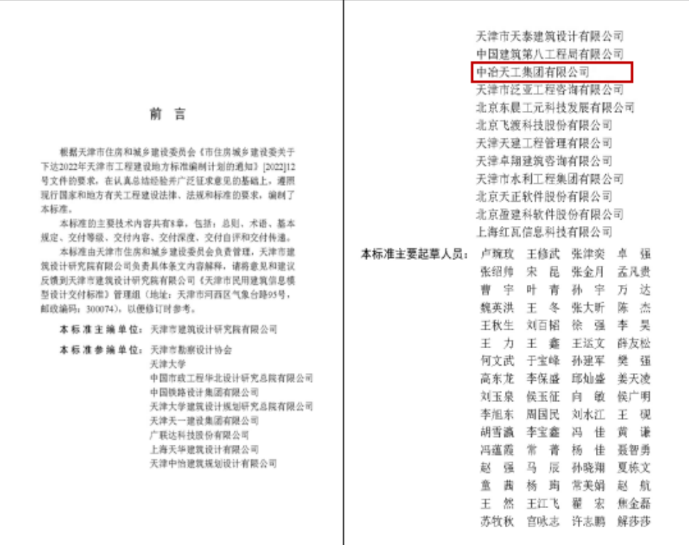近日,中冶天工參編的《天津市民用建筑信息模型設(shè)計(jì)交付標(biāo)準(zhǔn)》(DB/T29-319-2024)經(jīng)天津市住房和城鄉(xiāng)建設(shè)委員會(huì)批準(zhǔn),正式發(fā)布實(shí)施。標(biāo)準(zhǔn)的發(fā)布實(shí)施彰顯了中冶天工在BIM技術(shù)領(lǐng)域的綜合實(shí)力,增強(qiáng)了天工BIM品牌的影響力和競(jìng)爭(zhēng)力,為進(jìn)一步提升中冶天工在BIM領(lǐng)域的引領(lǐng)地位奠定了堅(jiān)實(shí)基礎(chǔ)。