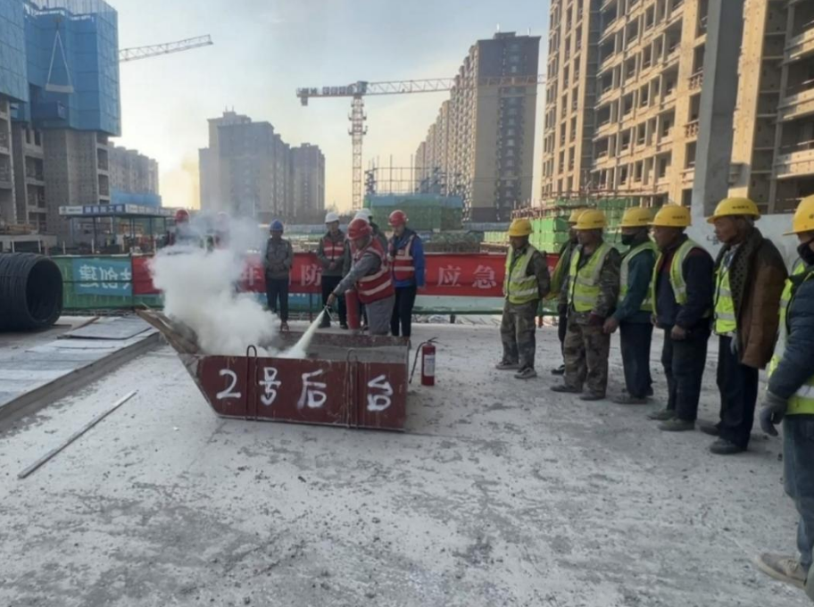 劃定區域,還原真實火情場景。為保障演練安全有序、貼合實戰,項目部提前完成全流程籌備工作。工作人員在指定區域布設警示帶,通過物理隔離清晰劃定演練范圍,杜絕無關人員誤入,為演練安全開展筑牢第一道防線;隨后在預設的安全容器內點燃模擬火源,明火迅速燃起并升騰起大量濃煙,高度還原火災初期的現場狀態,讓參與人員直觀感受火情發生時的真實環境,為后續實操環節做好充分鋪墊。