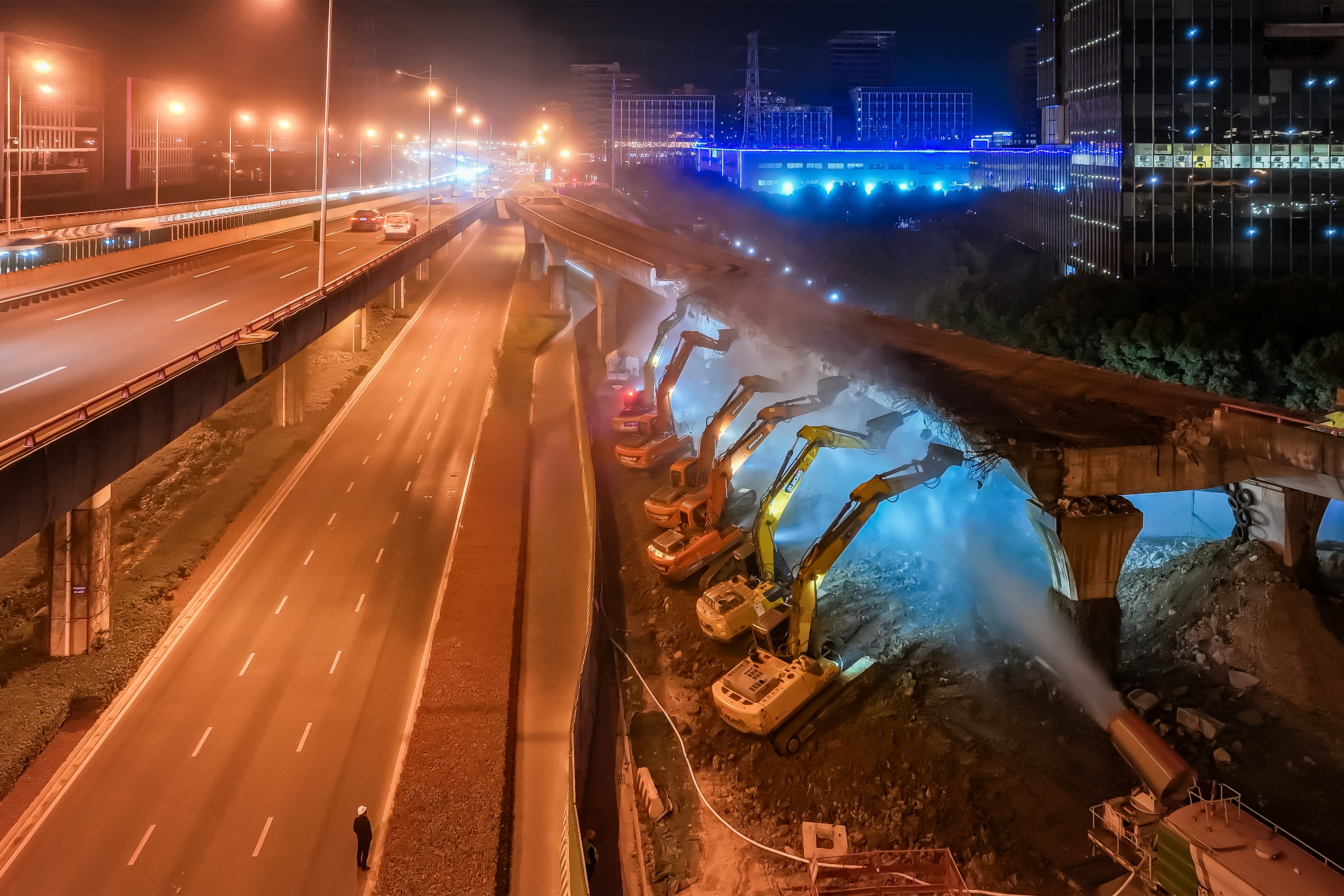 為確保拆除施工安全、高效、有序推進,項目部提前謀劃、精準施策,組織專業技術人員對NW原建橋梁進行全面勘察與結構評估,詳細核查橋梁結構形式、材料性能及周邊環境,制定了科學完善的專項拆除施工方案,明確了拆除順序、工藝流程以及安全管控要點,并在施工區域周邊設置標準化圍擋、警示標志和LED警示燈,安排執勤人員現場指揮疏導,最大限度降低施工對周邊交通及市民出行的影響。