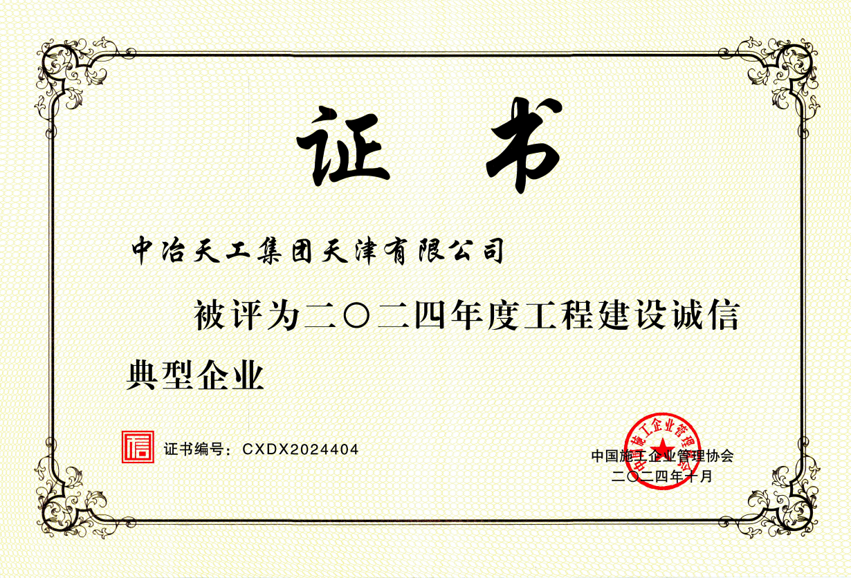中国施工企业管理协会2024年度诚信典型单位(天津有限)